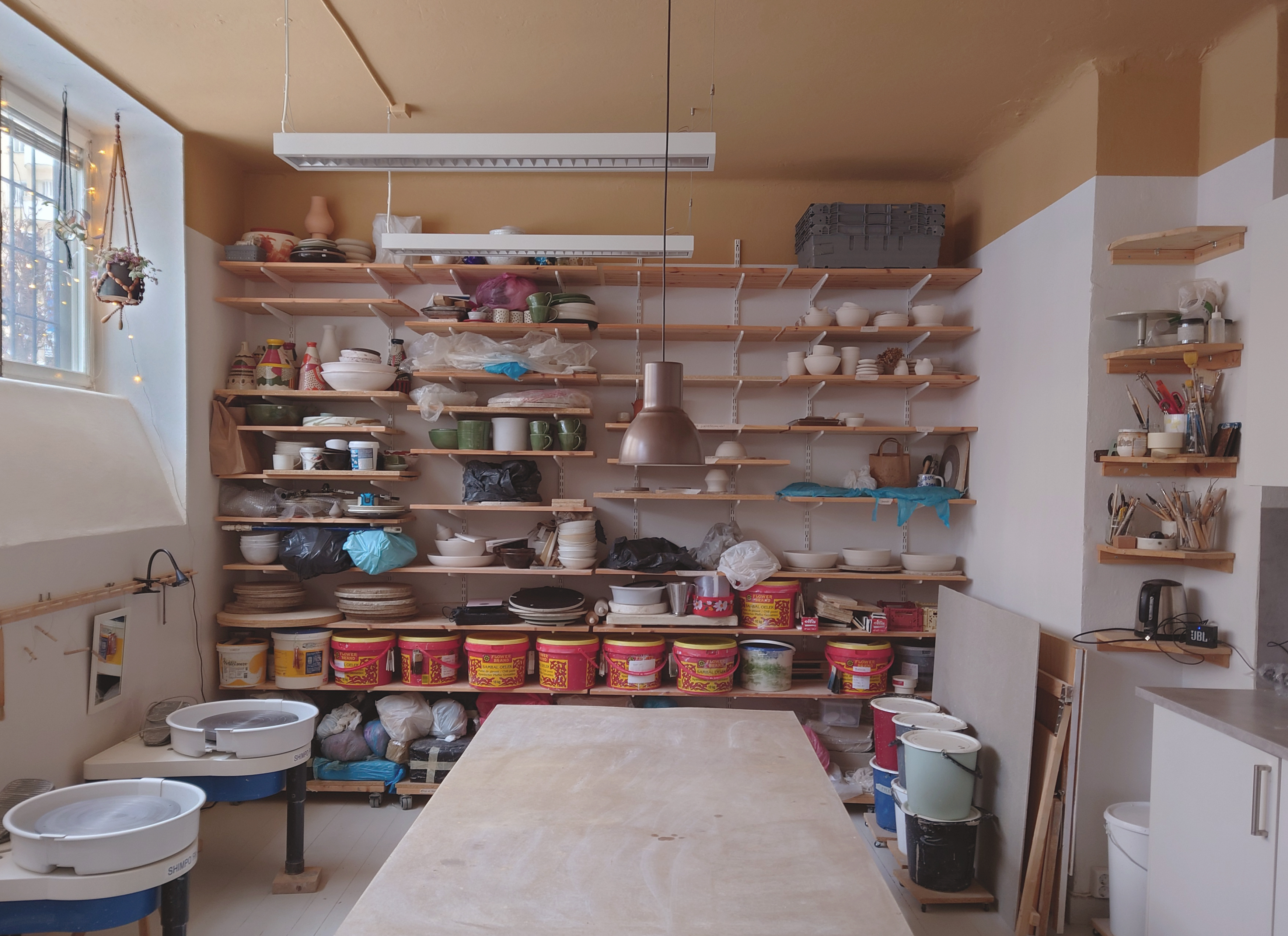 Här samsas nybörjare med mer erfarna hobbykeramiker och ateljén drivs av Maria som tar hand om bränningar, inköp, blandning av glasyrer med mera. Ibland anordnar vi även events och ställer ut vår keramik gemensamt till försäljning.